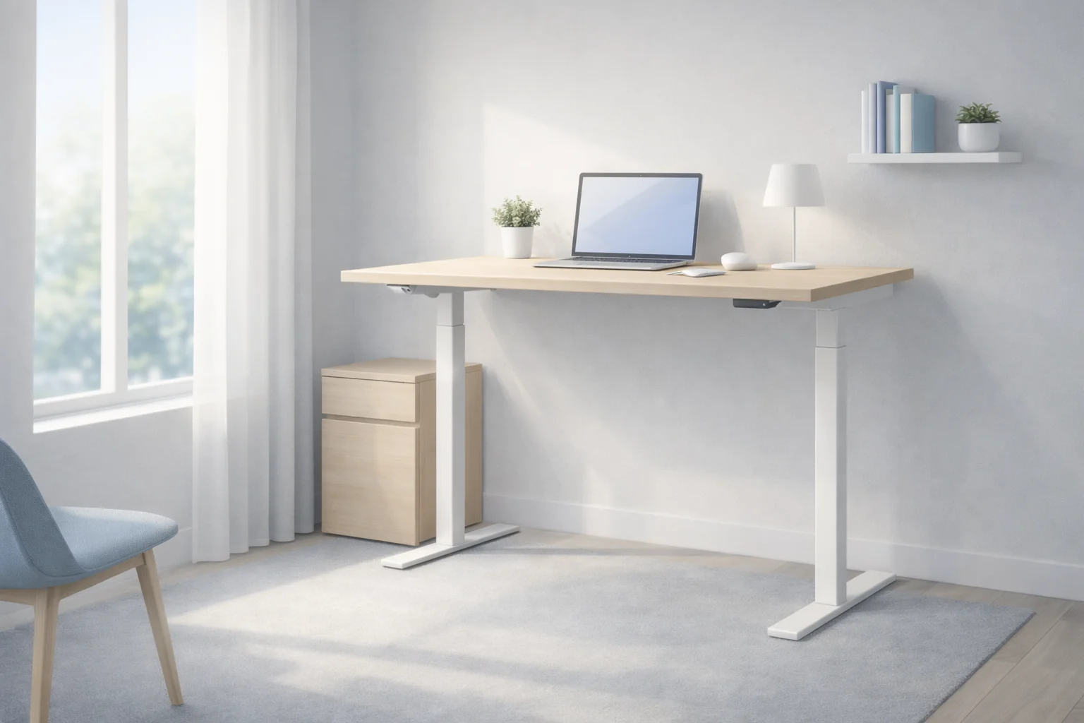A good small-space standing desk needs to get the basics right first. The desktop should still feel usable for your laptop, monitor, keyboard, and small accessories. The desk also needs to move smoothly between sitting and standing height without feeling wobbly or overbuilt for the room.